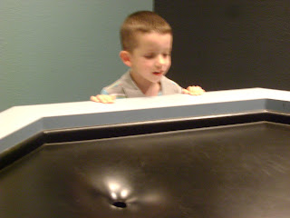 Wesley turned the big "2" today. He has grown up so much these past few months... for example putting 3-4 words together, kicking balls, walking up and down steps by himself, reading himself books, saying "i love you". We tried to come up with somewhere special to take him for his birthday..and we hit the jackpot. We visited the Science Museum of Oklahoma. We had to make an hour drive north to Oklahoma City. Once there we were pleasantly surprised at all the great activities there are for children there. Carter and Wesley were both highly stimulated for over 4 hours. They had a great time!